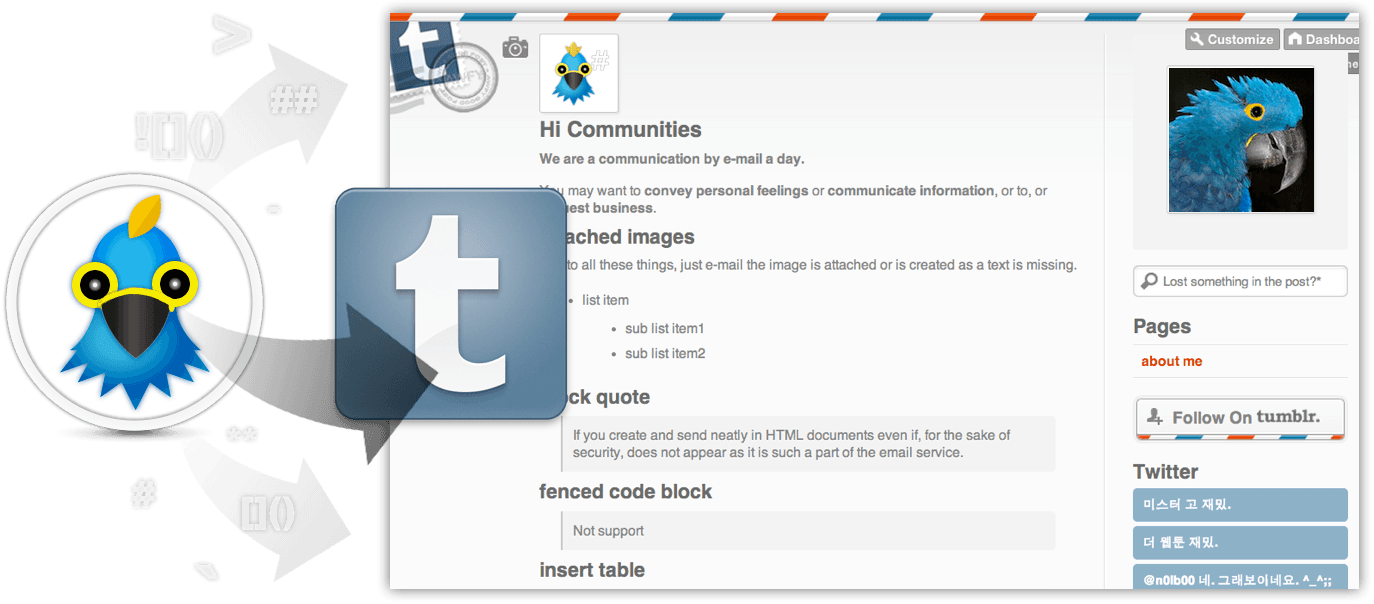 - Post to tumblr