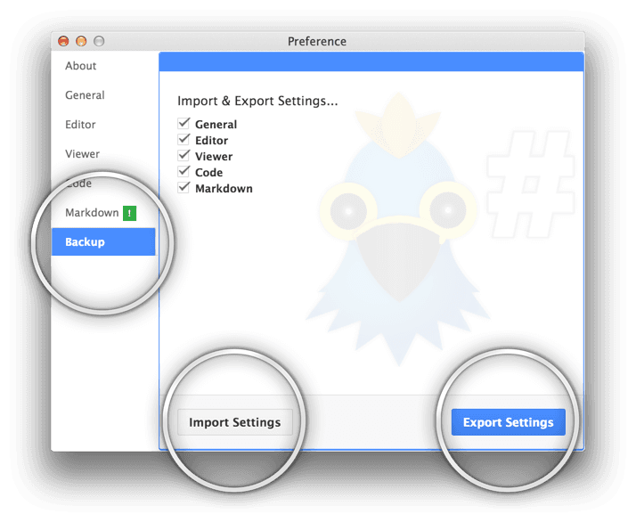 먼저 환경설정 윈도우를 띄웁니다. 그리고 좌측 백업 메뉴를 클릭하고 원하는 환경설정 부분을 선택합니다.