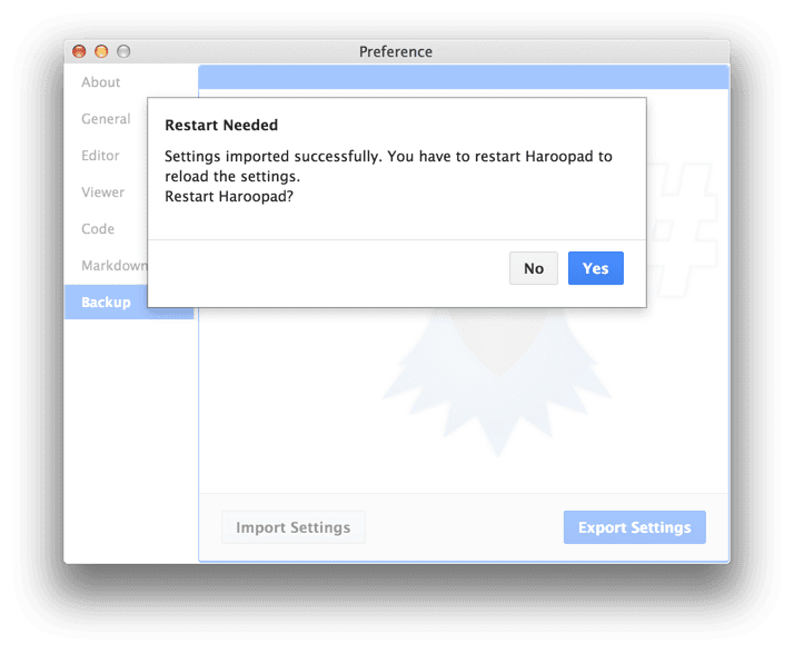 파일명은 기본적으로 Haroopad-YYYY-MM-DD-setting.json 규칙으로 저장됩니다.