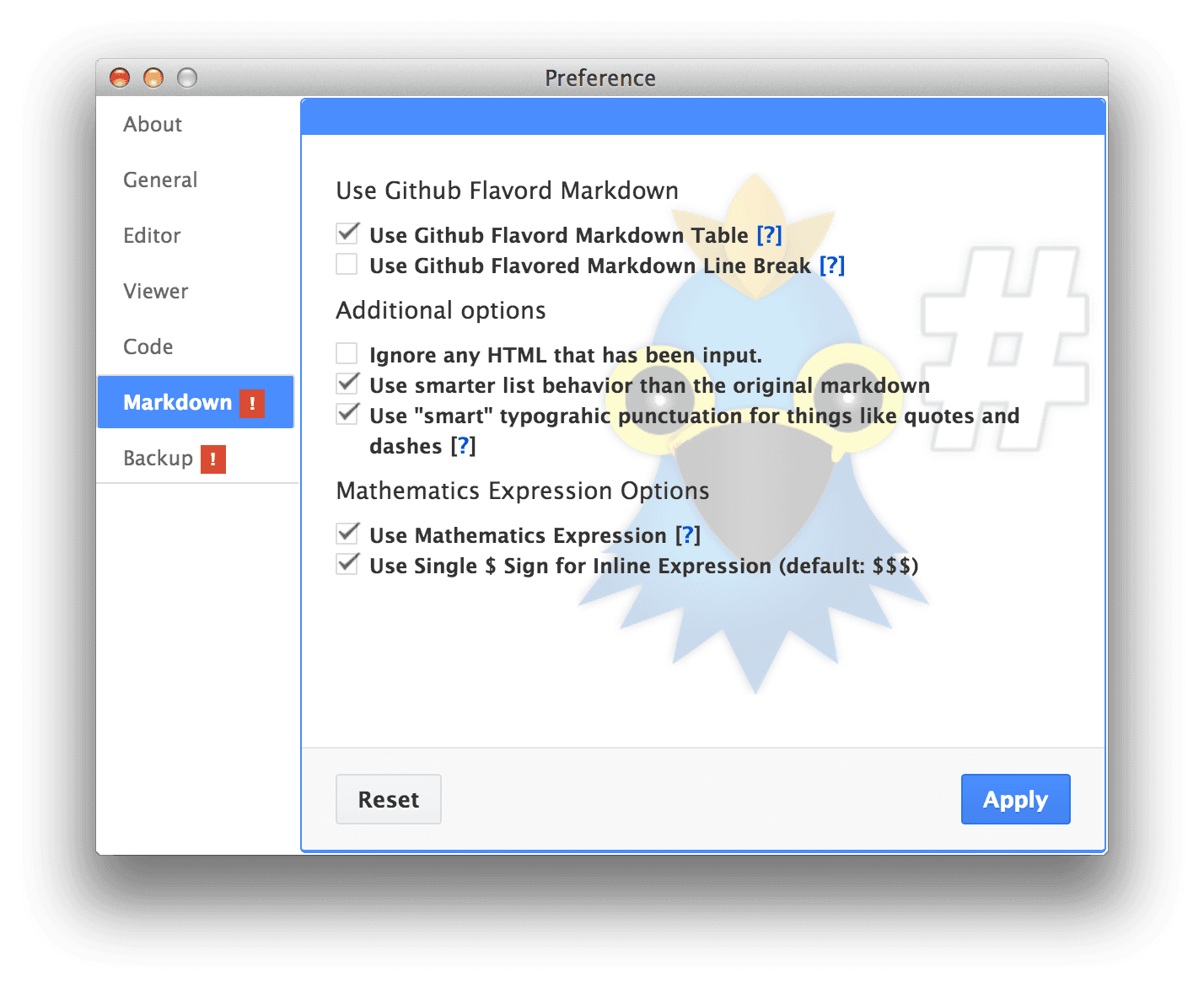 이 두가지 옵션은 Github 스타일의 테이블 문법을 사용할 것인지 선택 합니다. 그리고 줄바꿈의 경우에는 일반적으로 에디터에서 엔터를 입력하면 줄바꿈이 되지만 마크다운의 특성상 출력된 결과에서는 줄바꿈이 되지 않습니다.