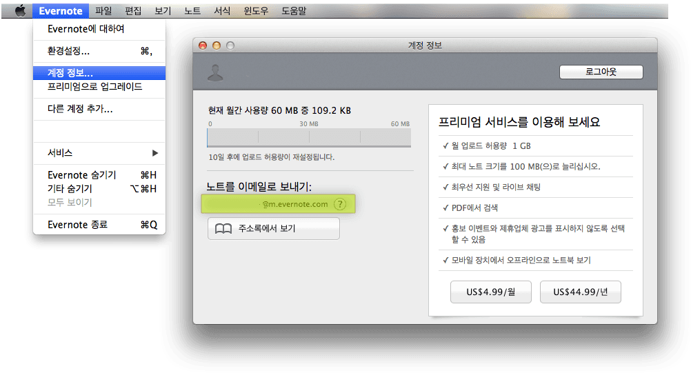 에버노트 고유 이메일 주소 확인하기